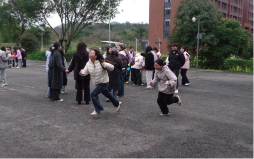 数字抱团游戏则充满了紧张与刺激,随着主持人喊出不同的数字,同学们迅速反应,抱团组队,现场气氛热烈非凡。