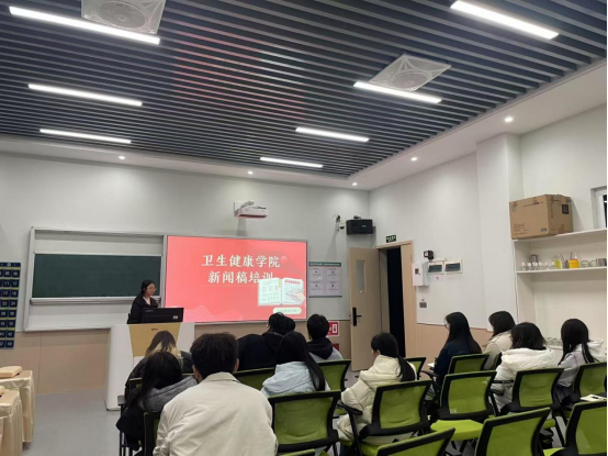 2025年3月10日,卫生健康学院在1104教室对学生助理团队进新闻稿培训。此次培训旨在提升学生助理的新闻写作能力,为学院宣传工作注入新活力。本次培训由卫生健康学院团总支学生会宣传部负责人董宇洁主持讲解,特邀学院学工主任秦洪老师参加并讲话。