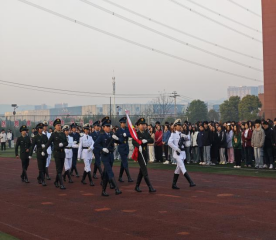 升旗仪式开始国旗护卫队迈着整齐的步伐走向操场,伴随着《义勇军进行曲》,鲜艳的五星红旗冉冉升起,高高飘扬在校园上空,同学们激情澎湃,共同奏唱中华人民共和国国歌,在嘹亮的国歌声中表达自己的爱国之情。