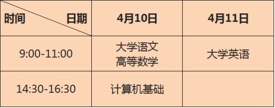 2021年我市普通高校“专升本”考试定于4月10日、11日进行,具体安排如下: