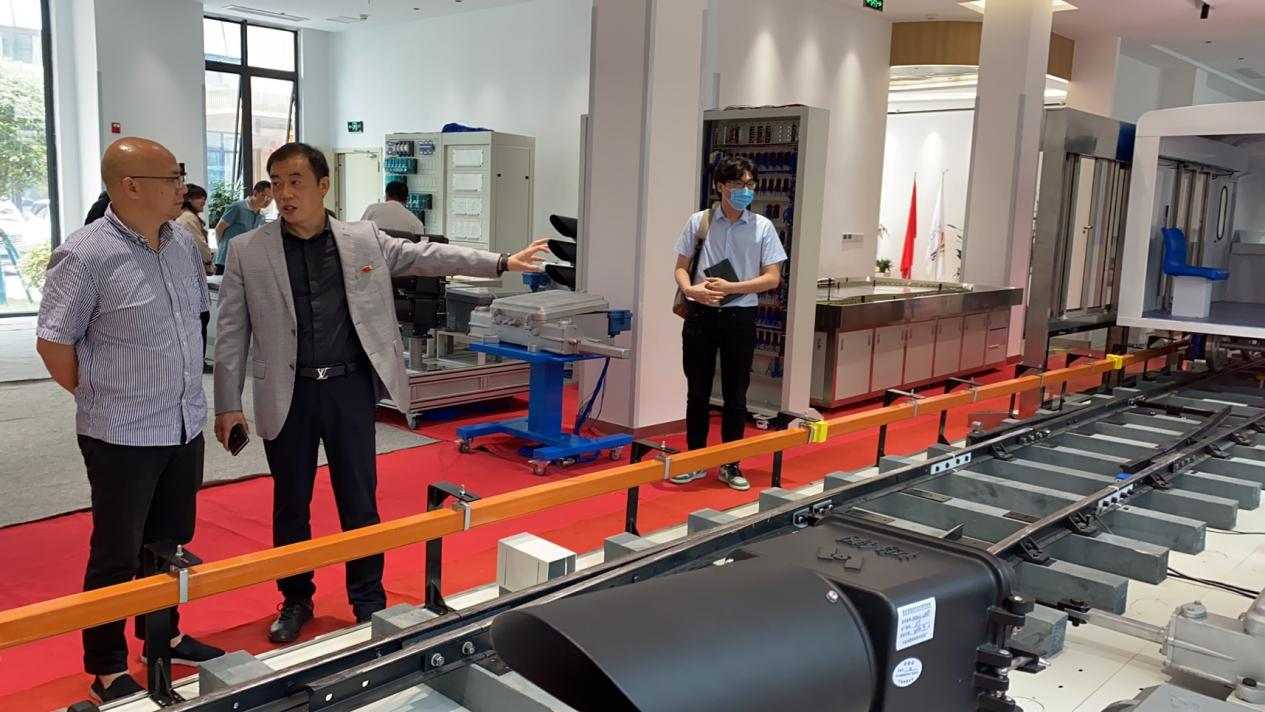 座谈会后,考察小组参观了重庆联纵科技公司的城市轨道交通计算机联锁仿真实验室、轨道交通信号基础设备实验室、轨道交通车辆装配实验室等相关专业实验设备。参观过程中重庆联纵科技总经理陈兵亲自对实验室以及实验设备进行专业性解说,考察小组成员频频与其进行交流与互动。