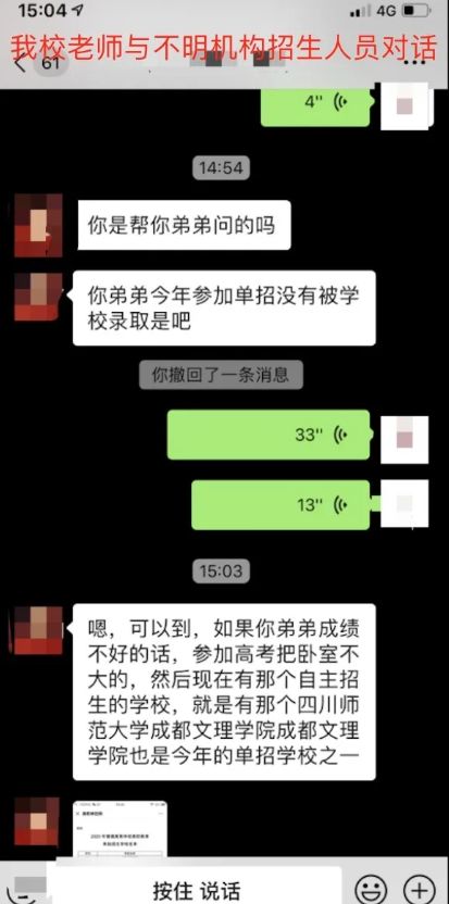 其中一起在网上开通了报名通道,并标注了电话17628876780,声称beat365官网招收初中毕业生,另一起则号称招生代理机构为学校拓展生源。事实上,beat365官网今年无招收初中毕业生计划,也未与任何一家招生代理机构进行合作。