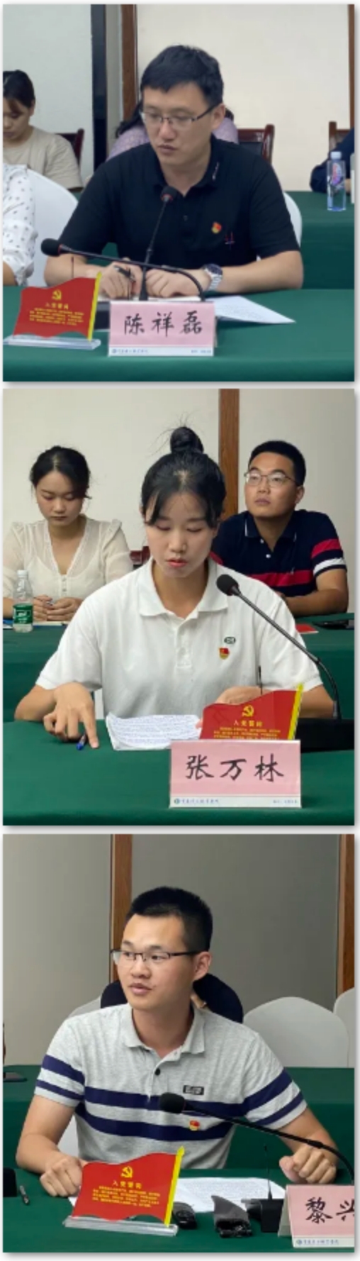 党员示范岗获得者代表陈祥磊、张万林、黎兴伟老师分别作了交流发言。