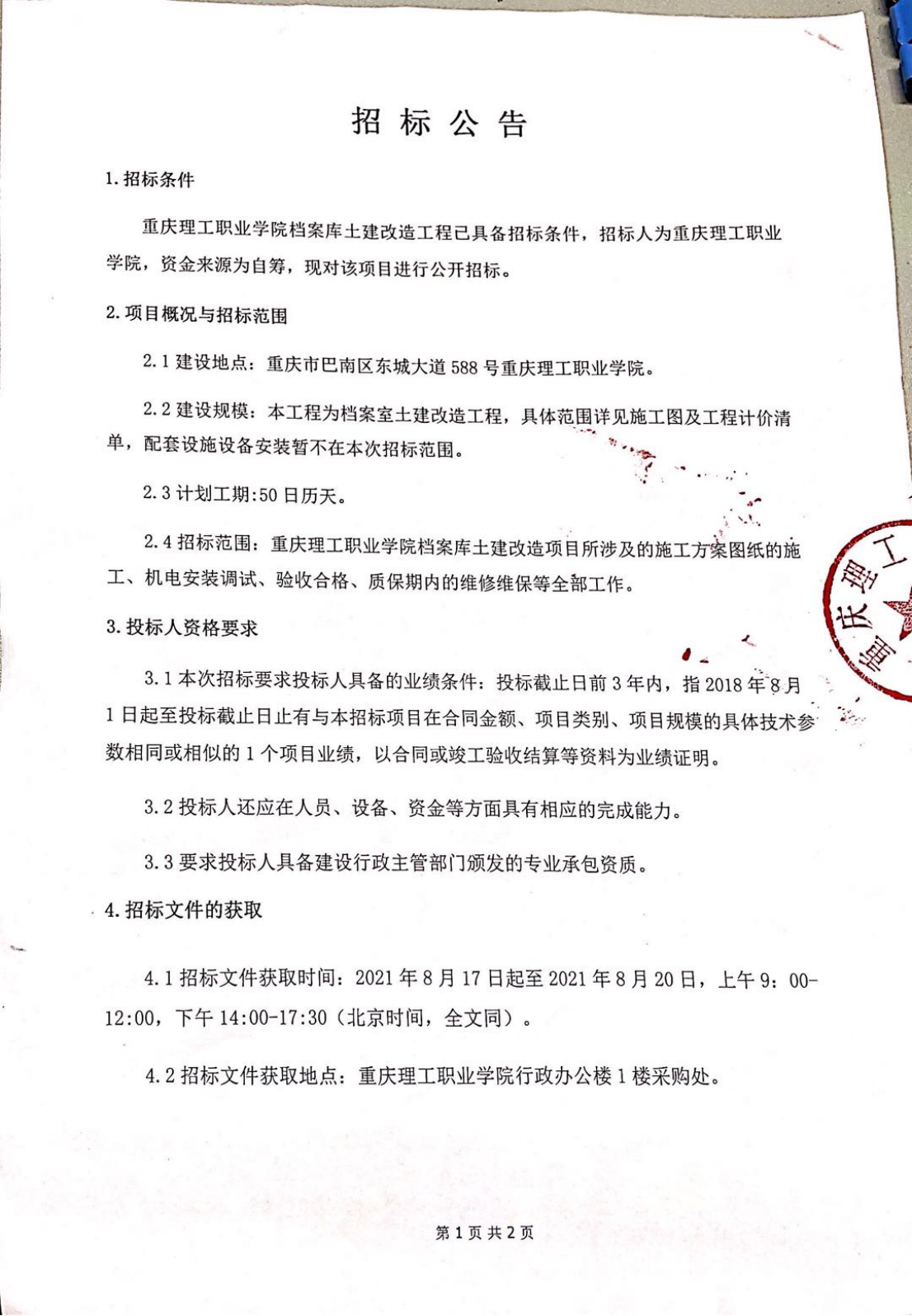 档案馆土建改造招标公告