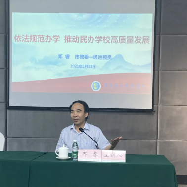 结合民办高校实际,邓睿巡视员提到,要坚持依法规范办学,推动学校高质量办学发展。他指出,民办高校的各级领导干部都要深入学习《民办教育促进法》《民办教育促进法实施条例》,加强教育公益属性,完善学校法人治理结构,自觉把法治作为学校治理的基本理念和基本方式,全面推进依法办学,坚持依法治校、依法执教,切实推动学校高质量发展。