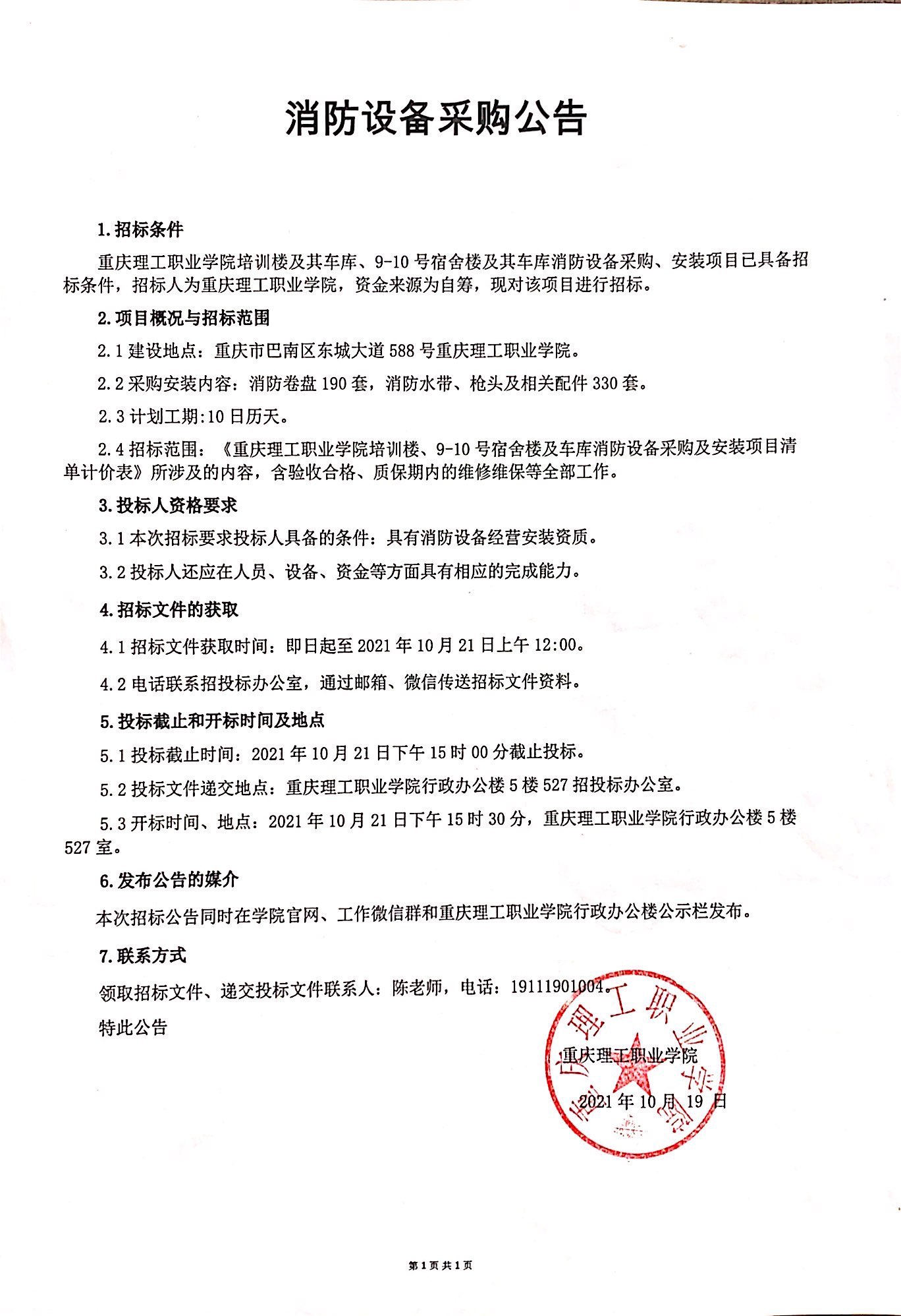 学院培训楼消防设备采购及安装招标公告