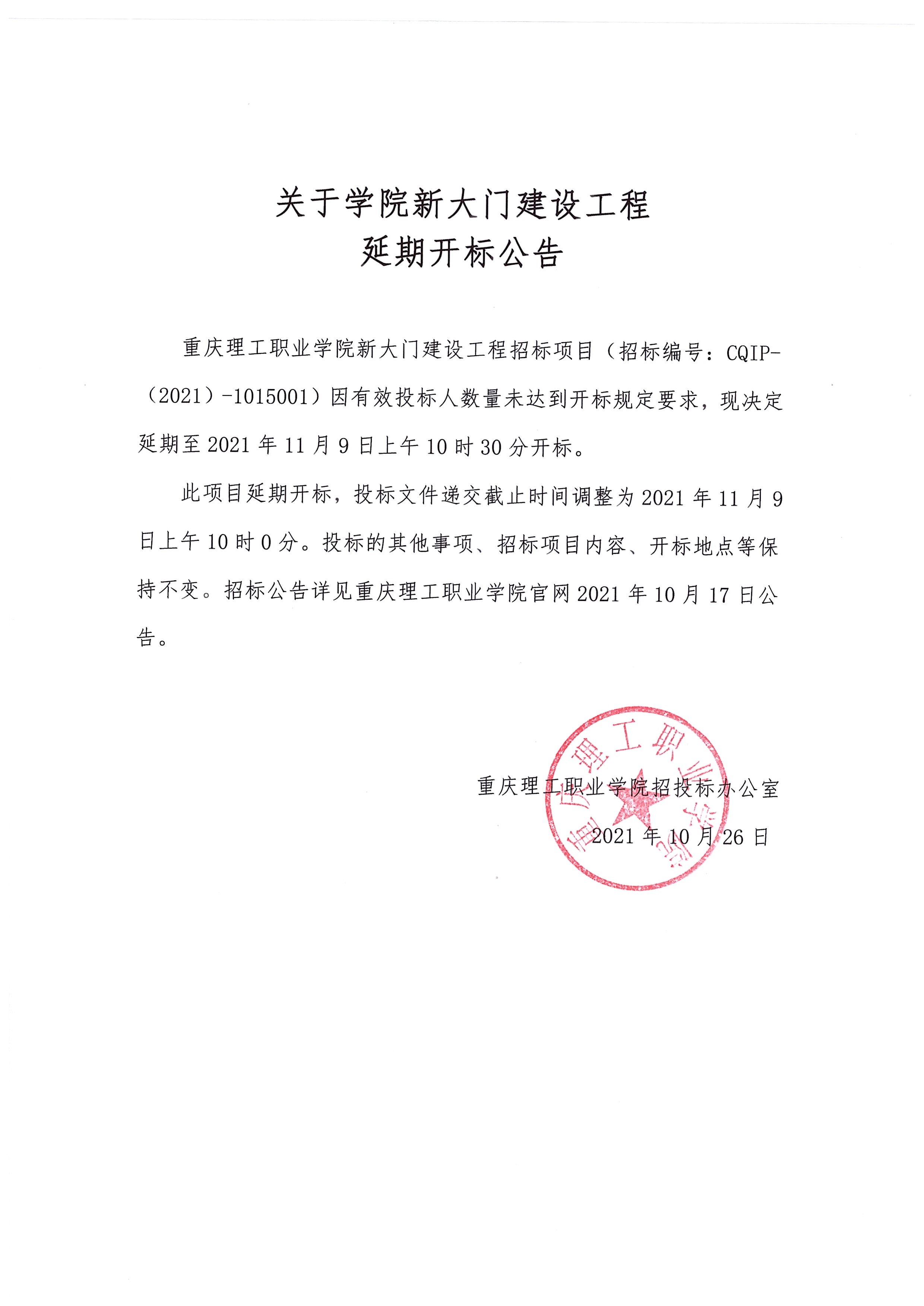 学院新大门建设工程延期开标公告