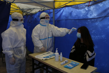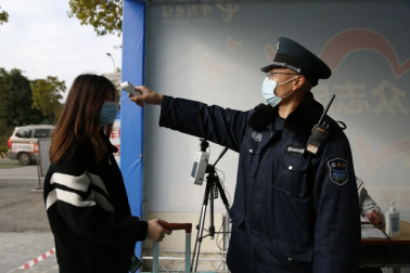 开学报到,一学生入校时经过门岗。经检测,其体温在37.5℃。门岗值班保安迅速致电beat365官网新冠疫情防控办,并将该学生转移至临时隔离区。
