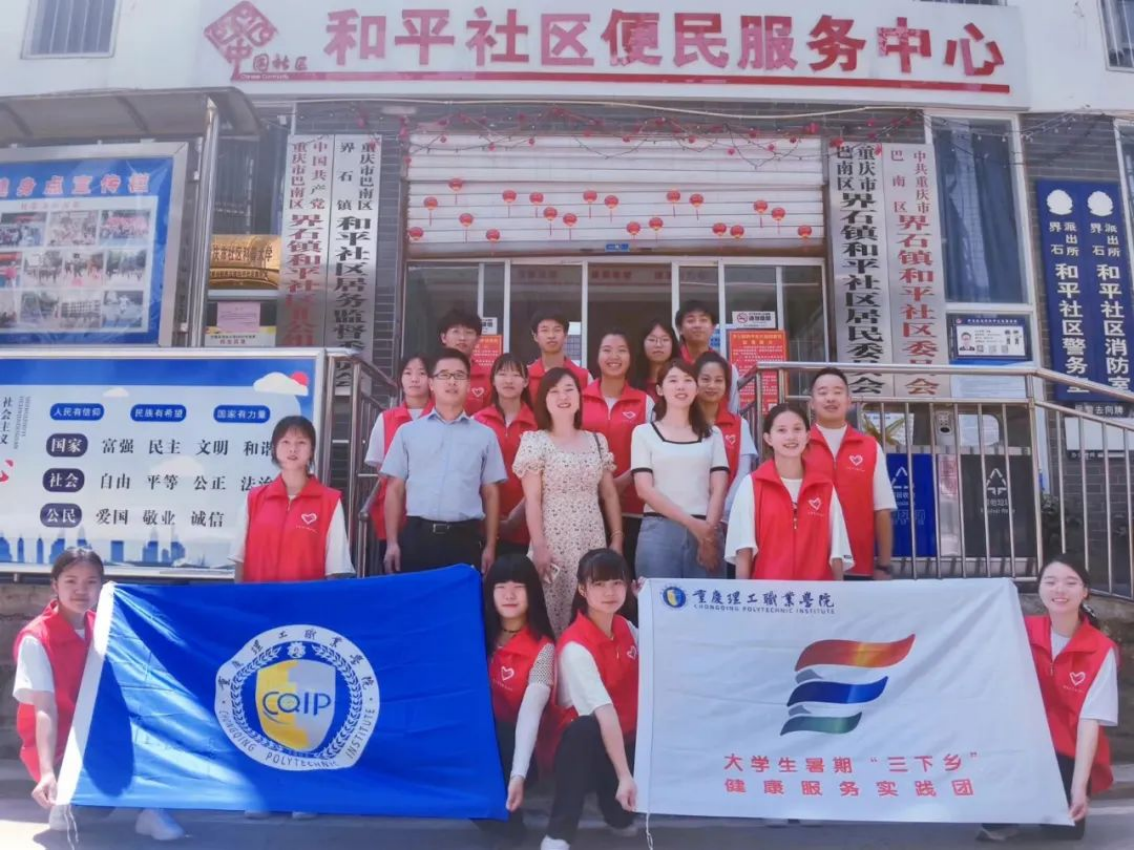 为深入学习宣传贯彻习近平新时代中国特色社会主义思想,扎实推进学校党史教育,引导和帮助广大青年学生上好社会实践“思政大课”,践行“请党放心,强国有我”的铮铮誓言,beat365英国官网网站于近日开展了2022年大学生暑期“三下乡”社会实践活动。2022年7月9日,beat365英国官网网站大学生暑期“三下乡”健康服务实践团来到巴南区界石镇和平社区,深入推广卫生知识宣传教育,为居民提供了各方面的医疗服务