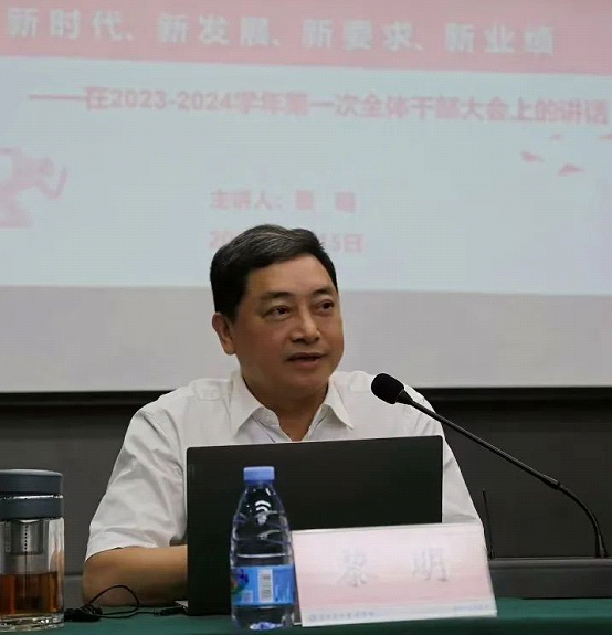 校长黎明教授以《新时代、新发展、新要求、新业绩》为题,就本学期学校干部如何作为,对全体干部及教职工提出4点要求——
