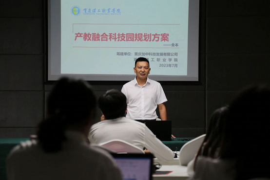 基建后勤处负责人详细介绍了学校拟投入建设的《产教融合科技园规划方案》,为全体新老教师描绘了学校发展的美好蓝图。