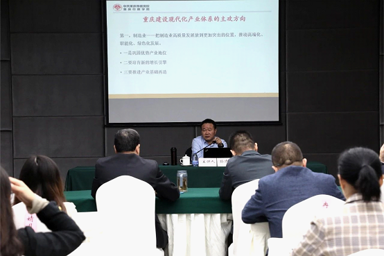孙凌宇教授主要围绕现代化产业体系:中国式现代化的物质基础;重庆建设现代化产业体系的主攻方向;重庆以建设现代化产业体系提升经济实力的路径三个方面进行了讲解。授课要点包括: