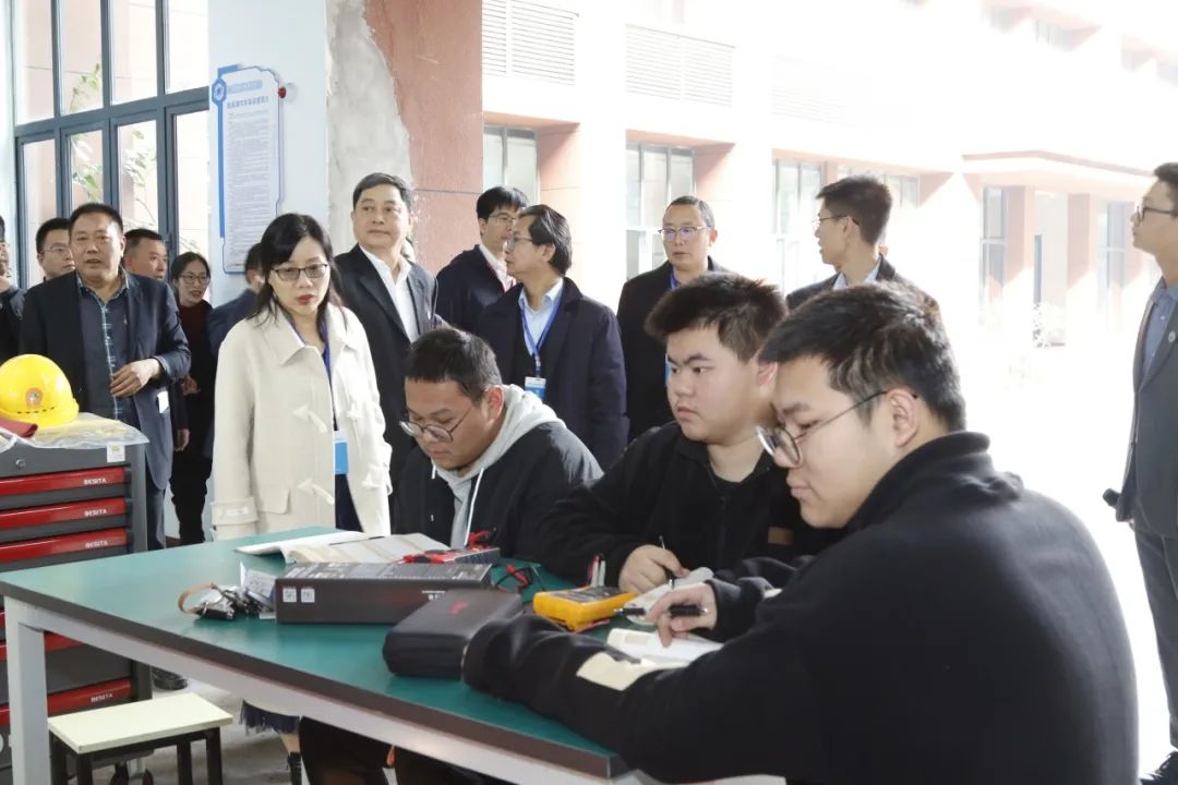 汇报会结束后,专家组在校领导和相关负责人的陪同下,先后实地察看了学校驾校科目二考场、汽车检测站、新能源汽车实训基地、汽车发动机实训室、汽车底盘实训室、汽车电气与电控实训室、电工与电子技术实训室、汽车整车实训室等校内实训场所。