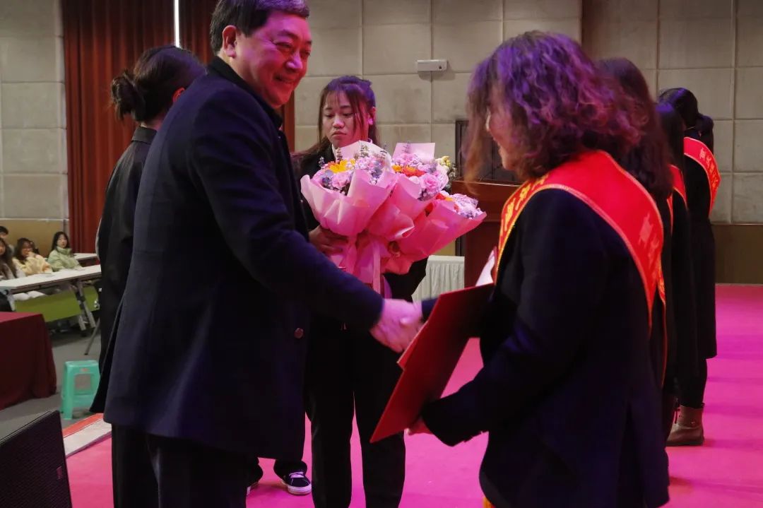 会上,校纪委书记兼工会副主席陶登明同志代表学校工会向广大女教职工致以节日的问候和美好的祝福,对全体女教职工的辛勤付出表示衷心感谢。同时,宣读了《关于表彰三八红旗手的决定》。