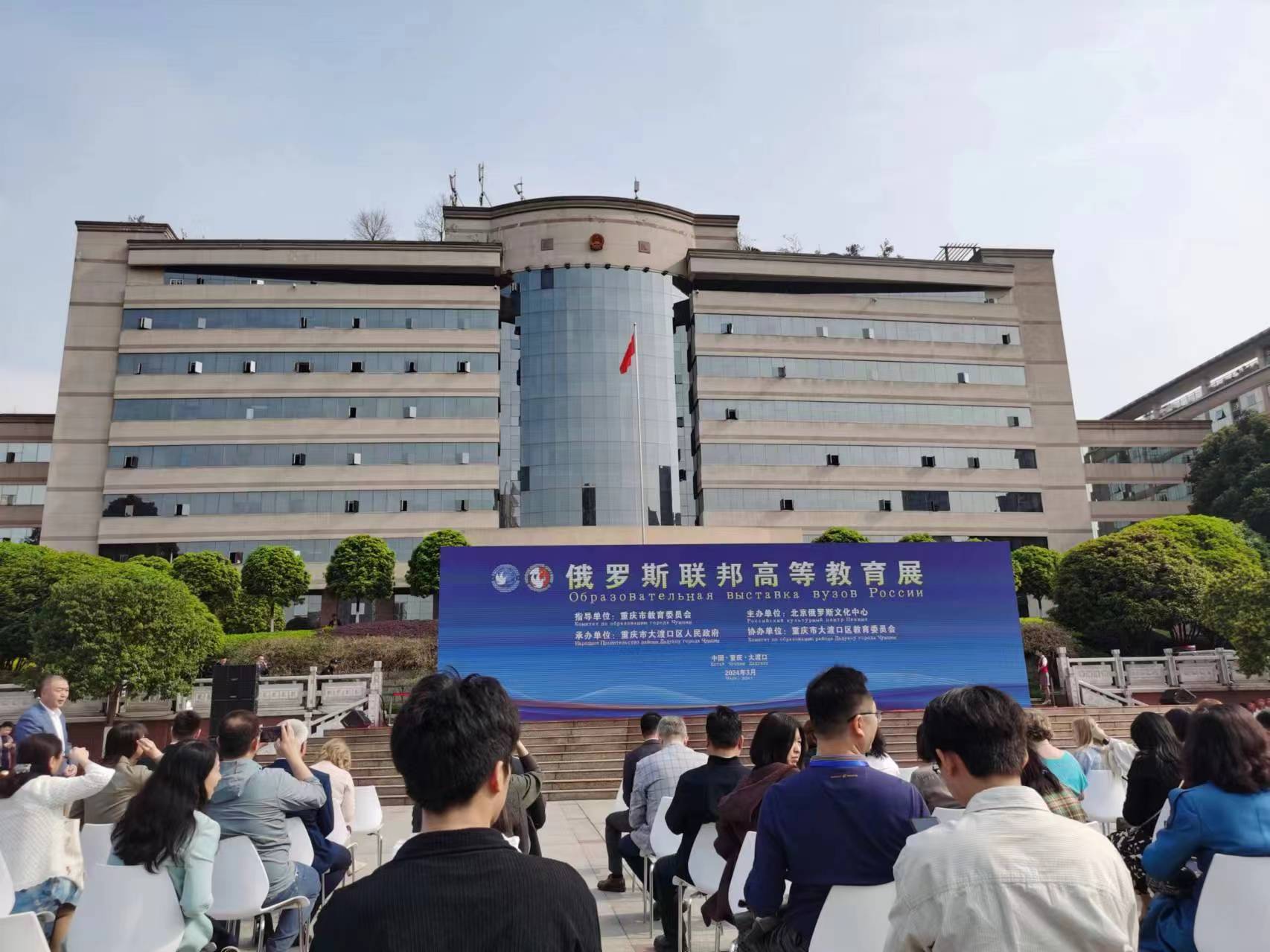 3月27日上午10点,在大渡口区政府广场,对外合作部向麒麟参加由市教委组织的俄罗斯高等教育展。