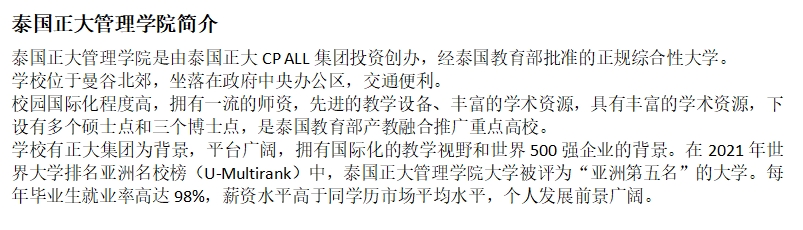 教职工本升硕、硕升博 泰国正大管理学院项目招生简章