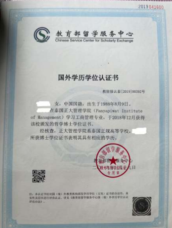 博士毕业证 及 中国教育部国外博士学历学位认证书