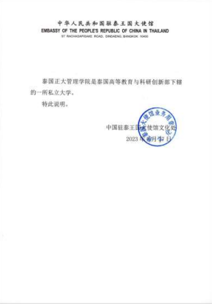 中华人民共和国教育部涉外监管部门对泰国正大管理学院的资质认证(http://jsj.moe.gov.cn)