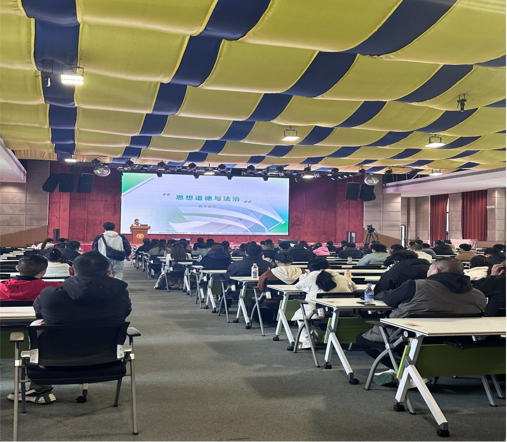 之后继续教育学院部分同志与新生代表一起在校门口合影留念;下午由蒋欣怡老师进行了三小时的《思想政治与法制》面授课。整个典礼及授课过程圆满结束,取得预期效果。