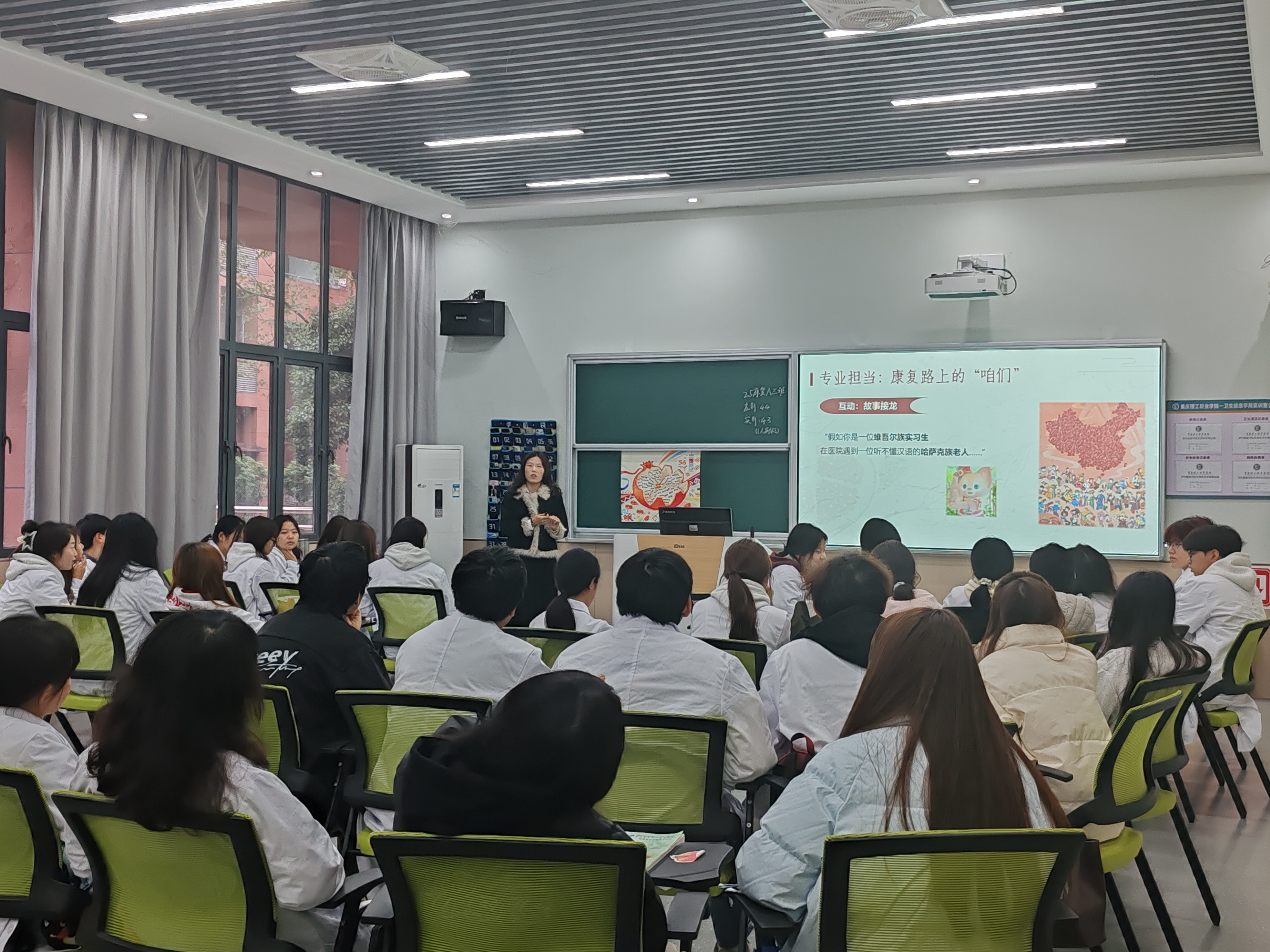 卫生健康学院刘珍珍老师将康复专业与民族团结完美结合,通过“故事接龙”“石榴籽承诺”等环节,展现“医者无界、康复有情”的专业温度。