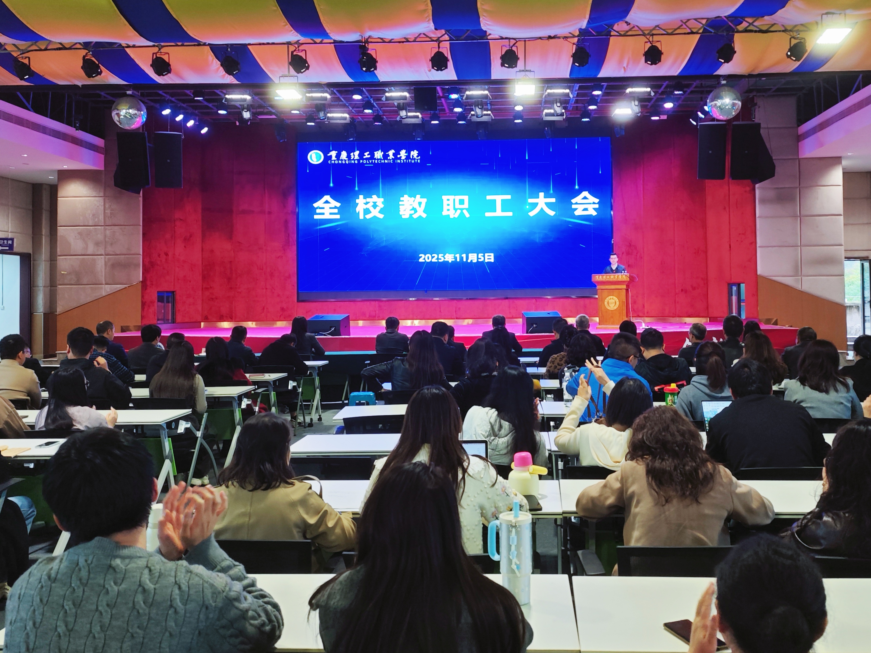 报告中,黎明对全校干部教师提出四点要求,强调要以战略眼光谋全局,立足巴南、扎根重庆、服务全国、放眼世界,对标先进职业院校找准发展差距;要深刻理解并践行学校发展思路,聚焦课堂改革、产教融合、师资建设、职教出海等关键领域,以“十大质量提升工程”为抓手,全面提升办学质量;要强化团结奋斗精神,凝聚全校合力应对发展挑战;要以实干担当落实各项任务,让奋斗者成为学校发展的受益者。